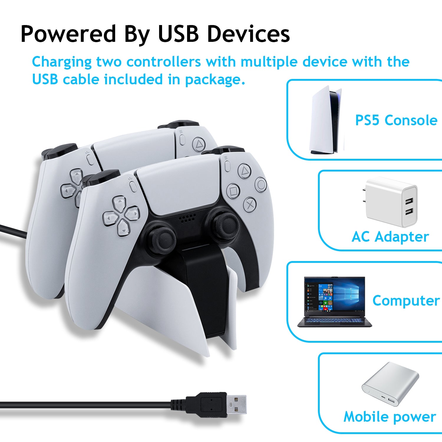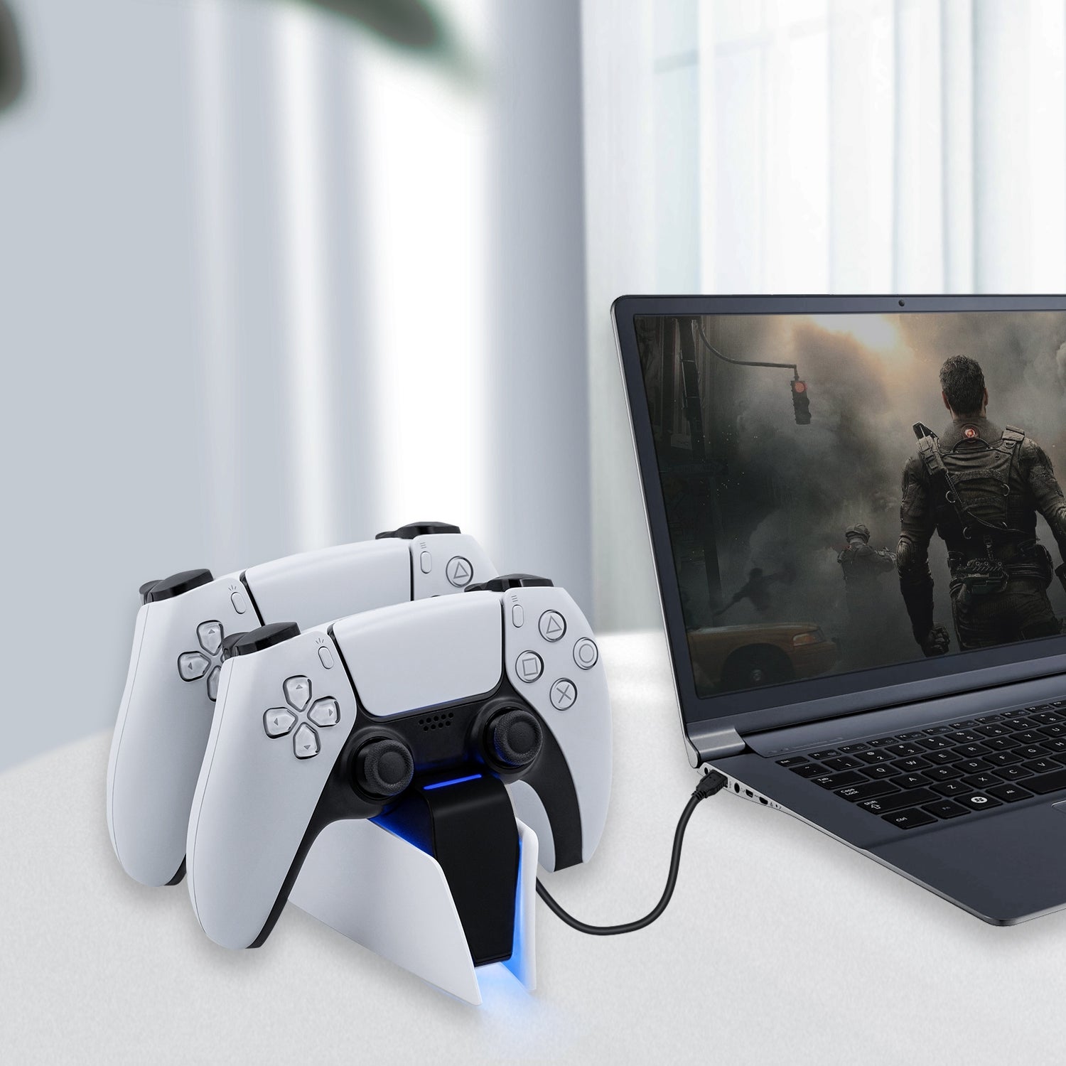 -Fast charging dual controller dock specially designed for PS5 DualSense controllers.