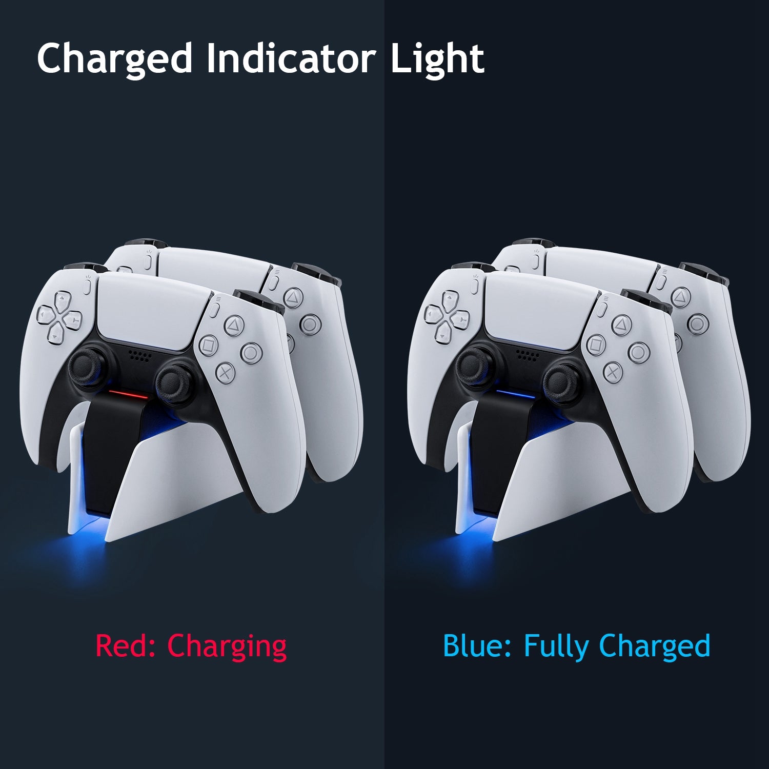 -With LED charging indicators: Red light for charging and Blue light for fully charged. Easy identify the charging status. Keep your PS5 controller fully-charged and ready to game.